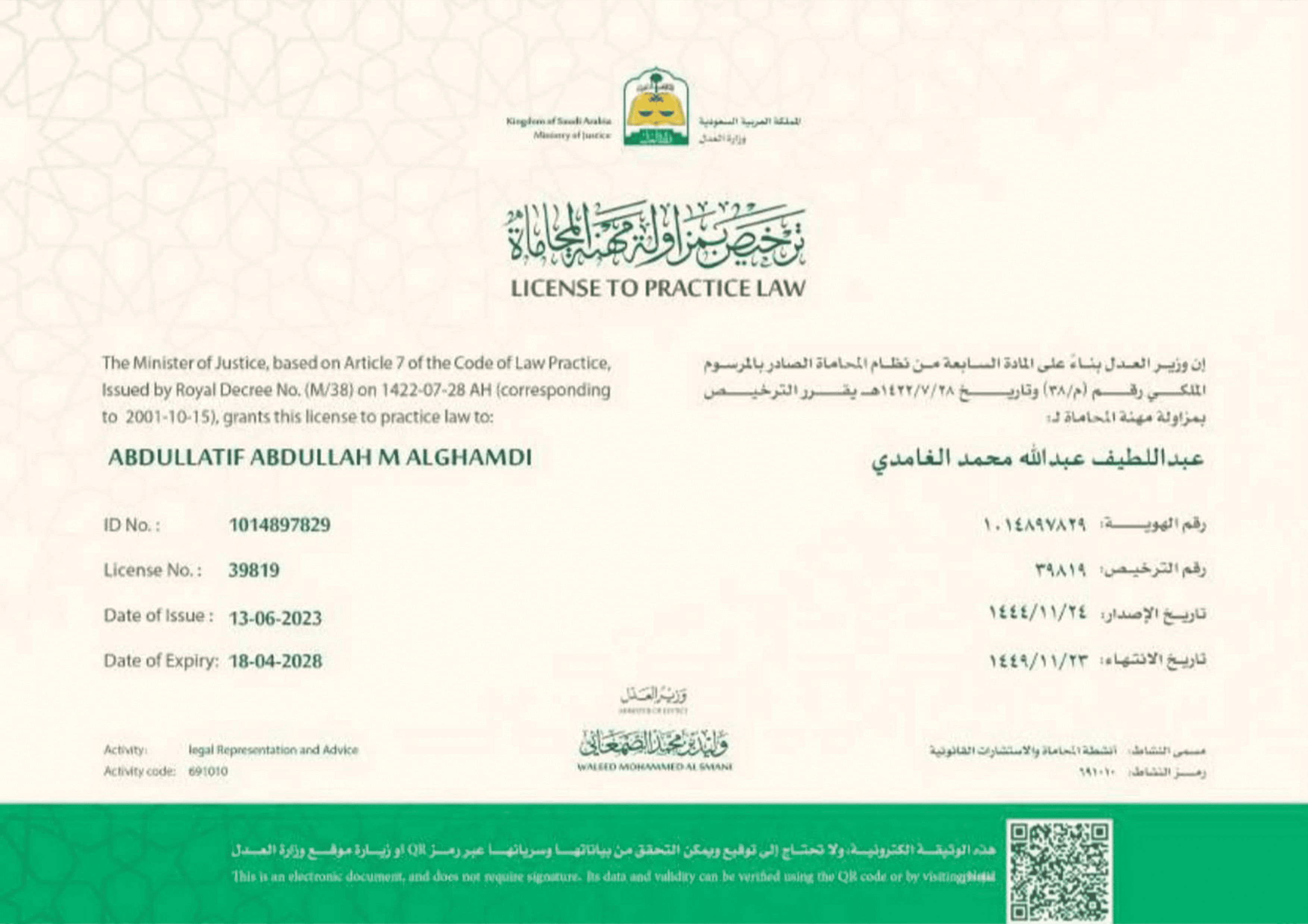 د.عبداللطيف الصهبي الغامدي .. خبرة قانونية موثوقة