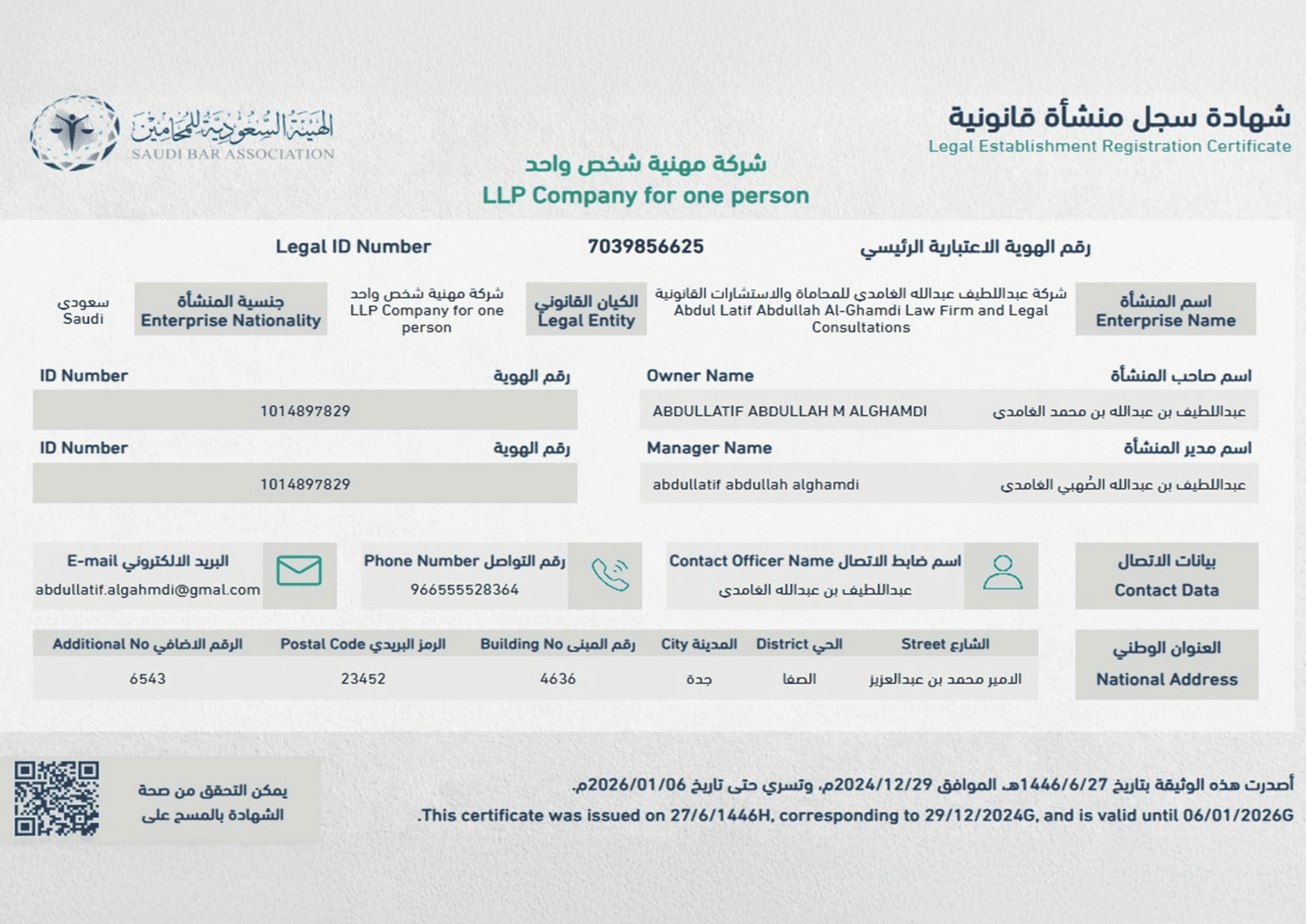 منذ أكثر من 30 عامًا، يقدم مكتب د. عبد اللطيف الصهبي للمحاماة والاستشارات القانونية حلولًا متكاملة للأفراد والشركات في جدة والسعودية. سواء كنت تحتاج إلى تمثيل قانوني قوي، صياغة عقود محكمة، تسوية نزاعات، أو تأسيس شركتك، نحن شريكك القانوني الموثوق